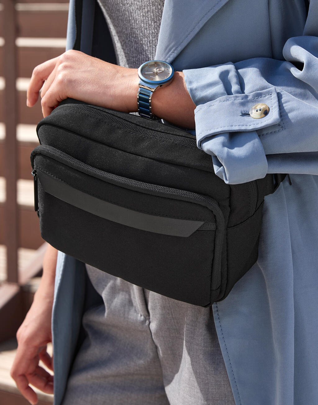 ·Outer zippered front pocket with rain flap and internal slip pockets