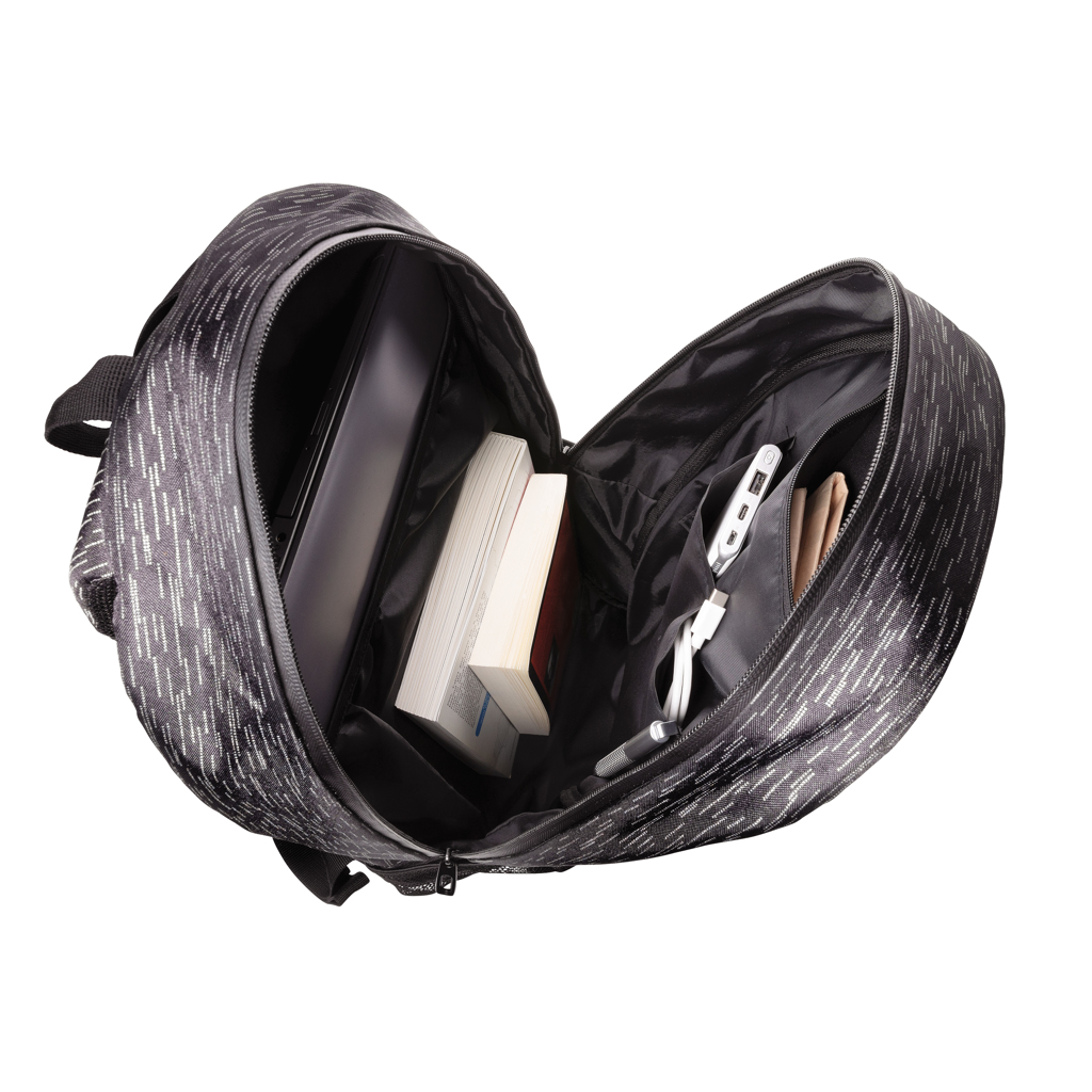 Suurenda oma nähtavust stiilselt selle 100% taaskasutatud polüestrist ja AWARE™ trahiiriga seljakotiga. AWARE™ abil on tagatud ehtsate taaskasutatud kangasastmete kasutamine ja vee säästmise mõju väidete toetamist, kasutades AWARE-i murrangulist füüsilist trahiiri ning plokiahela tehnoloogiat. Säästa vett ja kasuta tõelisi taaskasutatud kangaid. Seljakotil on kaasaegne täiesti peegeldav trükk, peamine panipaik koos 15,6-tolise sülearvuti sektsiooniga, ees olev tõmblukkussekk ning kaks võrkust taskut. Reguleeritavad rihmad. PVC-vaba. See kott säästis 8 liitrit vett ja on valmistatud 16 plastpudelist.