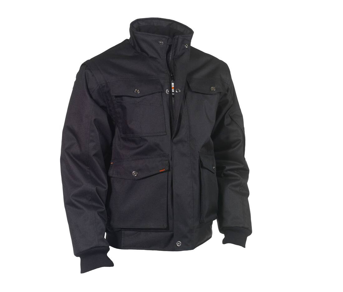 Multi-pocket breathable, water and windproof jacket with detachable sleeves . Breathable 2000 mvp . Waterproof 2000 mm . Taped seams . Collar with fleece inside . 1 chest pocket . 1 chest pocket with side pocket, small pocket and 2 pen pockets. 1 Napoleon pocket . 2 side pockets with side openings . 1 sleeve pocket with 2 pen pockets . Elastic cuffs and bottom . 1 inner mobile phone pocket . Printer zipper . Detachable zip puller. EN ISO 13688:2013