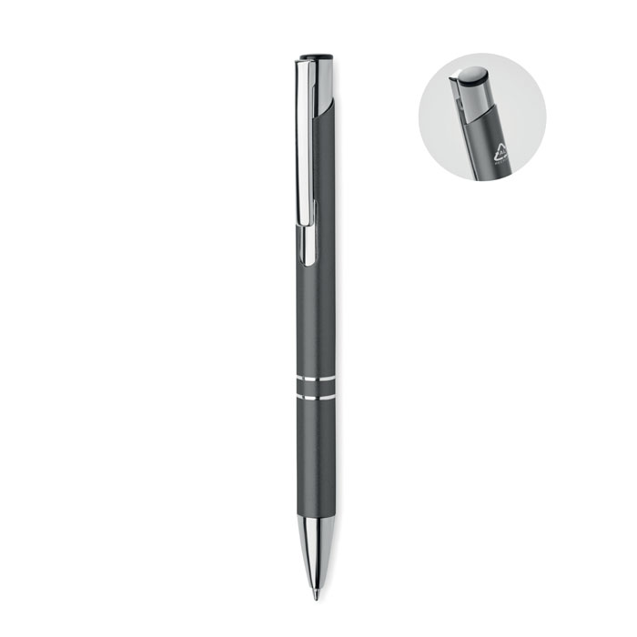 Vajuta nupuga pallikujuline pastapliiats taaskasutatud alumiiniumist. Sinine tint.