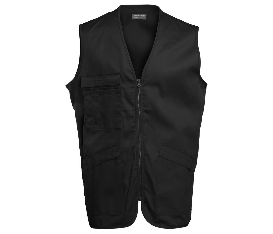 Mitmekordsete taskutega vest. 6 taskut, sh 2 pastakataskut, 1 topelt parempoolne tasku ja 2 lapiga taskut. Rinnataskut trükiks pole.