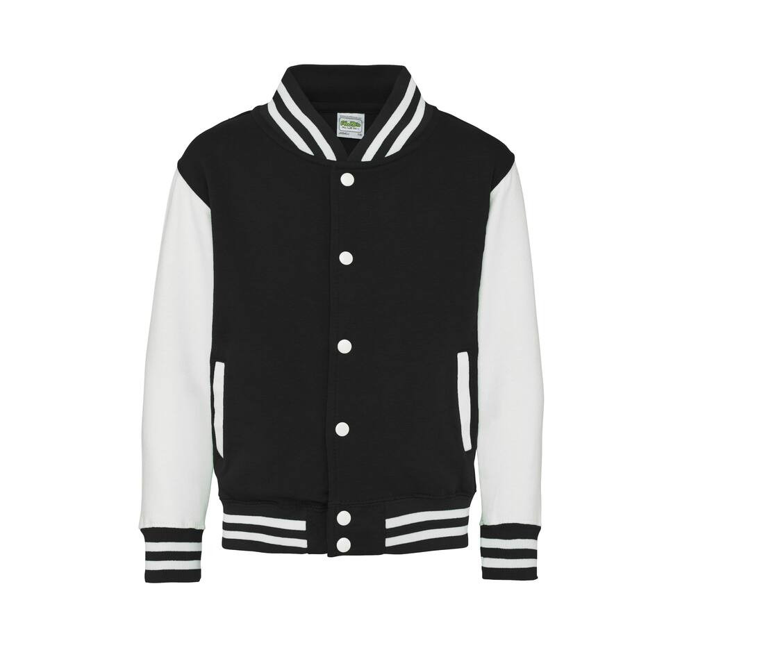 See laste kolledži stiilis jakk on valmistatud sportlikus Ameerika stiilis. Sellel on klassikaline lõige kontrastsete varrukatega ja esiosa popperitega sulgemiseks.