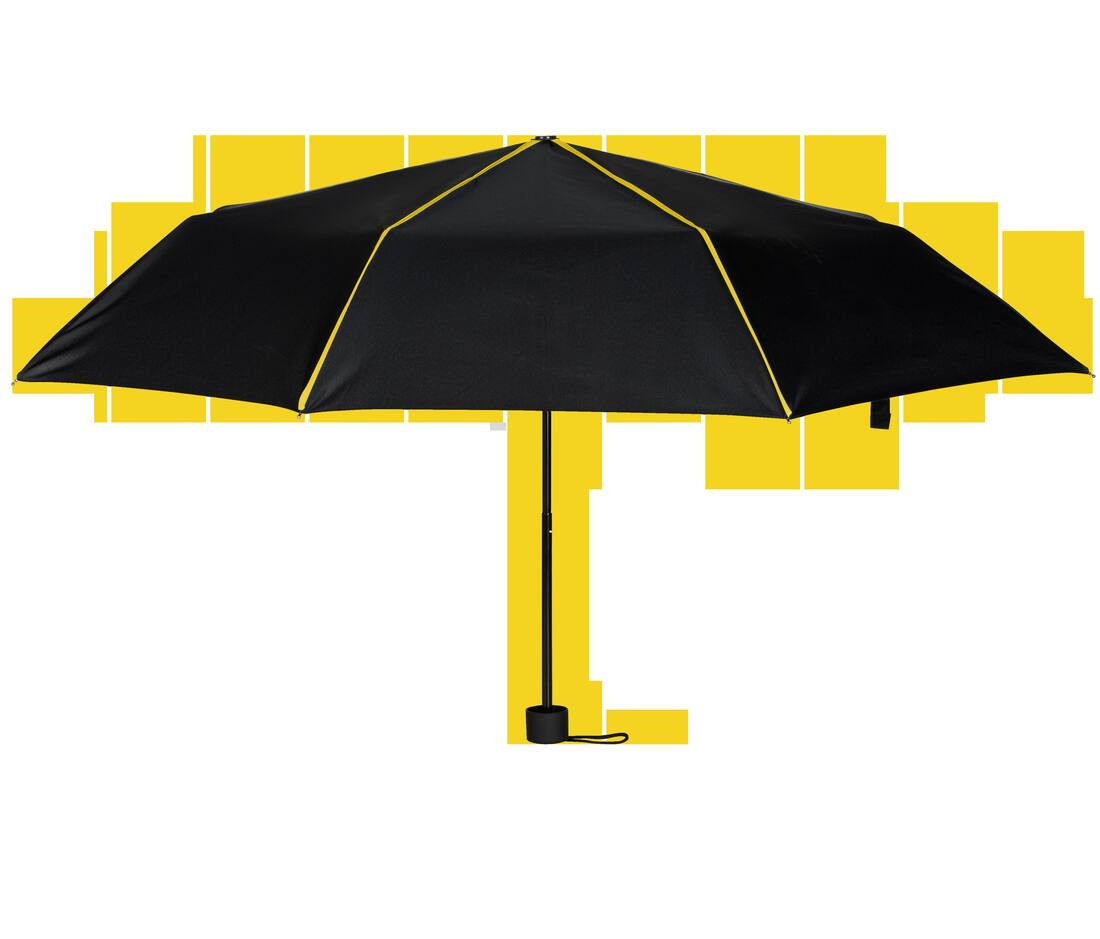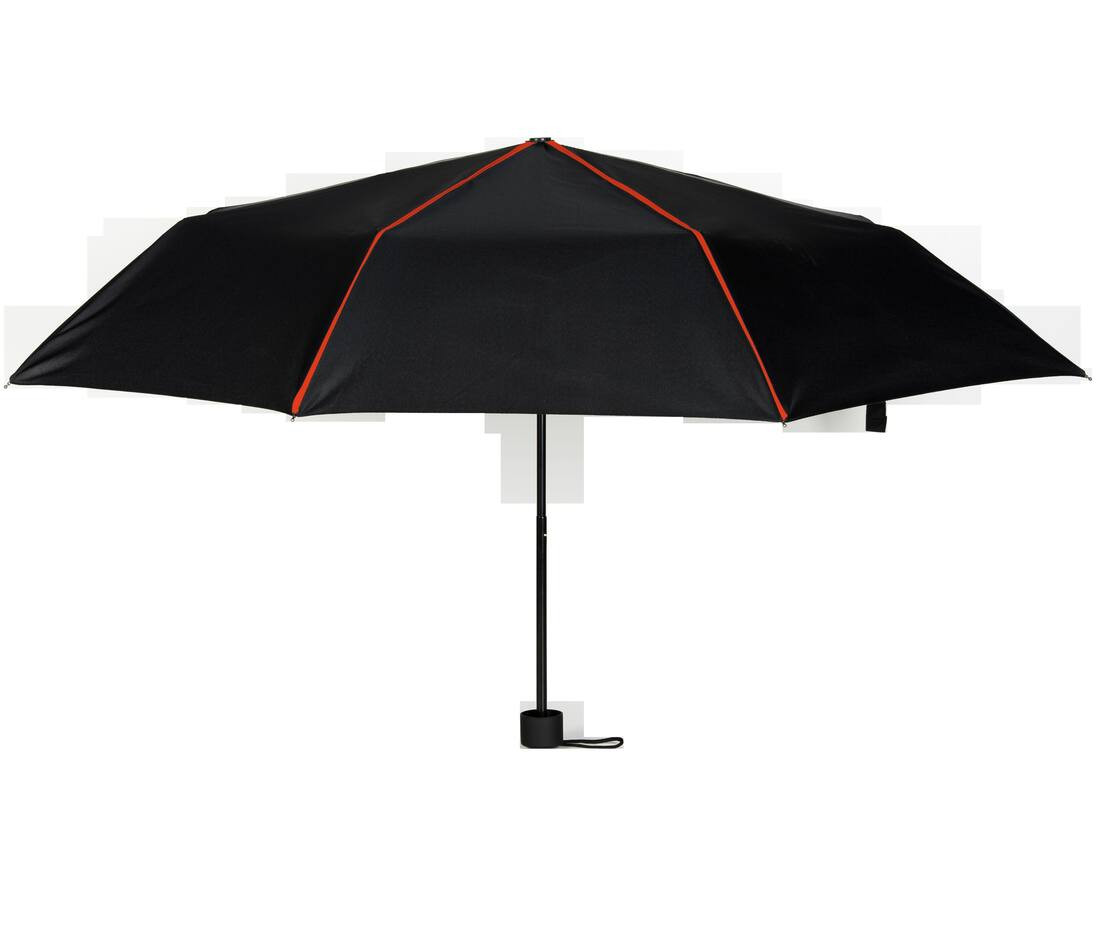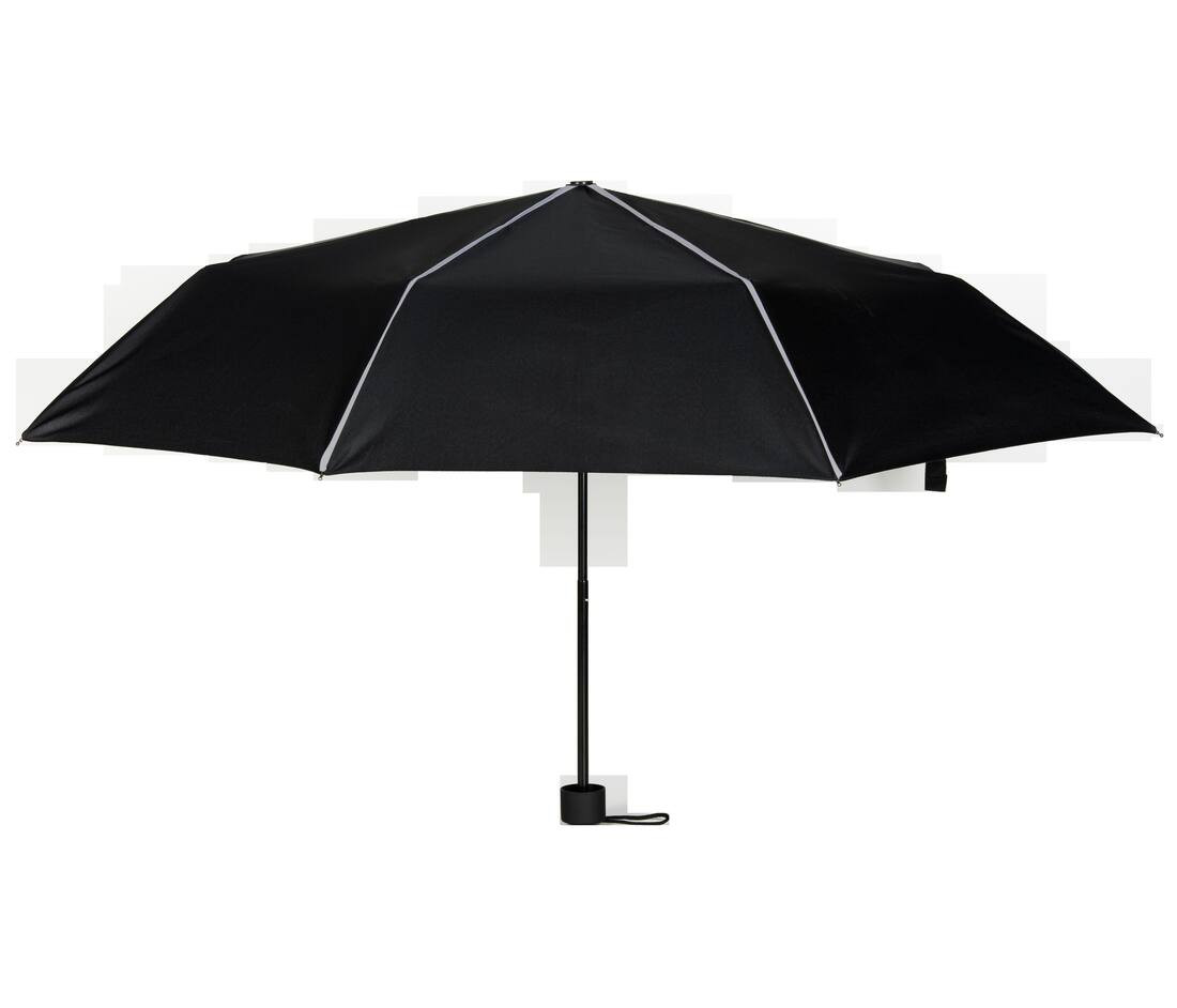 Mini vihmavari. Võib kolmeks voltida oma hoiukatte sisse. Läbimõõt: 54 cm. 2 kontrastset äärispaela.
