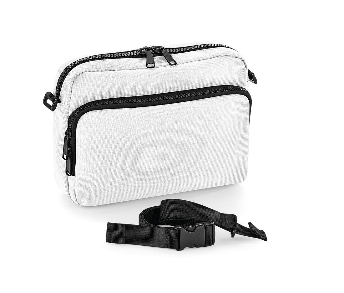 TearAway label for ease of rebranding. Zippered main compartment. Zippered front pocket with internal mesh divider. Secure, quick attachment clips for ModulR™ series integration. Innovative detachable strap system converts between shoulder bag, across body bag and waistpack. Integrates with BG240, BG242 and BG245 offering thousands of possible combinations. Dimensions: 13 x 19 x 7 cm. Capacity: 1 litres. Maximum Embroidery: 9 cm tubular hoop. Maximum Print Area: 9 x 9 cm