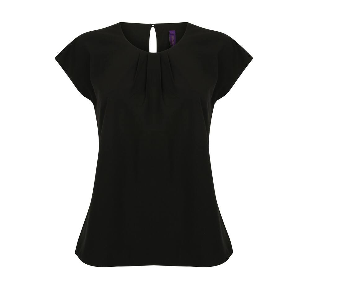 Naiste plisseeritud esiosaga pluus. Ühe nööbiga seljaosa avamine. Korkvarrukad. Sirge alläär. Kangas sisaldab hõlpsa hoolduse, niiskust juhtiva, anti-UV, kiiresti kuivavaid omadusi. Sobib H590 seeriaga.