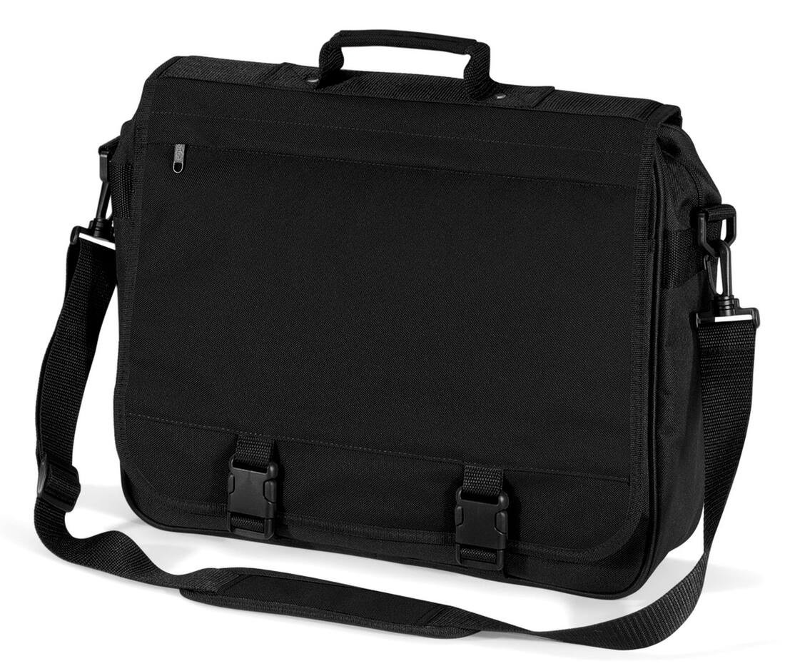 600D Polyester. Internal organiser section. Rear pocket with press stud closure. Zippered main compartment. Zippered front pocket. Secure clip closure. Detachable adjustable shoulder strap with pad. Padded grab handle. Dimensions: 40 x 35 x 11 cm. Capacity: 15 litres. Maximum Embroidery: 18 cm tubular hoop. Maximum Print Area: 34 x 16 cm