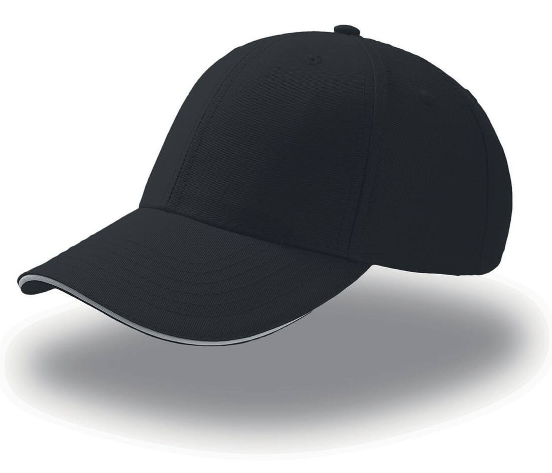 Baseballmüts 100% puuvillasest twillist. Eelkõverdatud päikesesirm koos saia vahel. Sulgemine: isekangaga rihm koos klõpsatava metallnupu ja õmmeldud auguga.