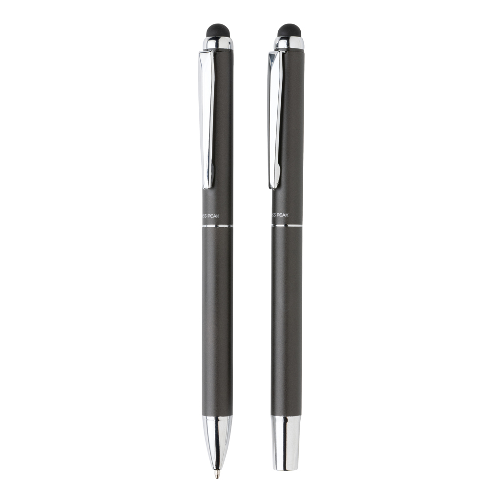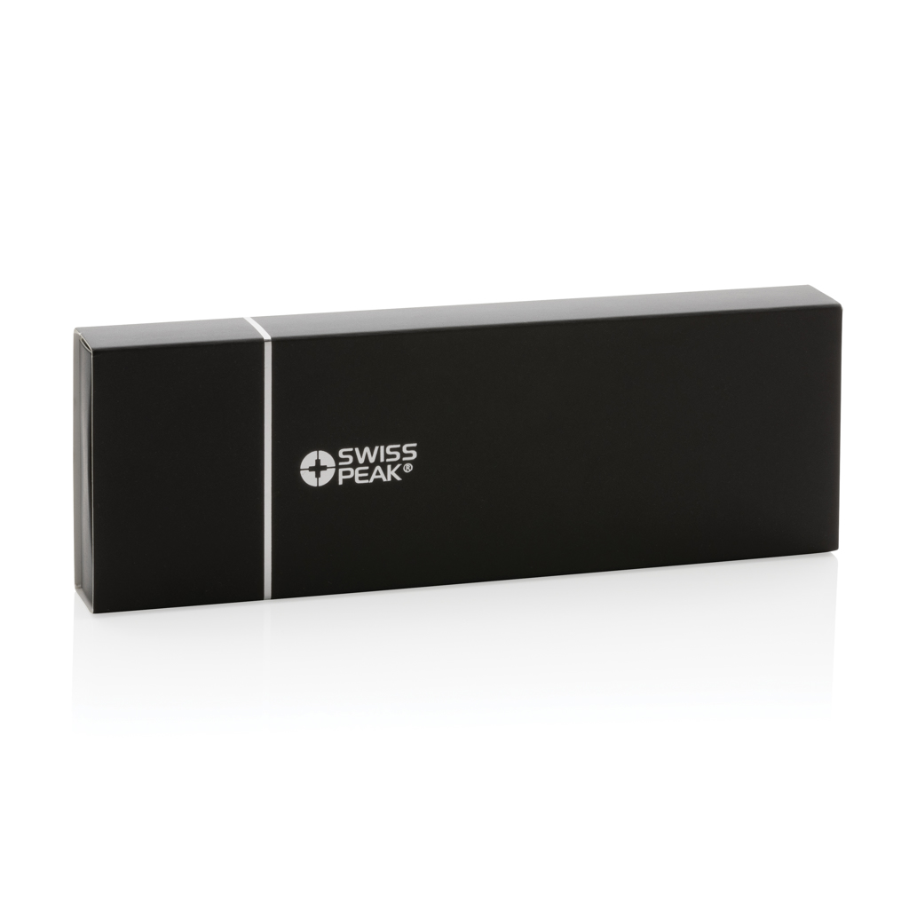 See Swiss Peak deluxe pliiatsikomplekt sisaldab ühte pastapliiatsit ja ühte rullpilliatsit, pakkudes täielikku kirjutamiskogemust. Mõlemad kingikomplekti esemed on varustatud kvaliteetse alumiiniumkorpusega ning ilusate matt gunmetalli viimistlustega. Iga pliiats on varustatud sinise värvusega Dokumental tindiga. Pastapliiatsi kirjutuskaugus on 1200 meetrit ja rullpilliatsil 400 meetrit. Pliiatsikomplekt tuleb luksusliku PU kotiga ja musta kingikastiga.